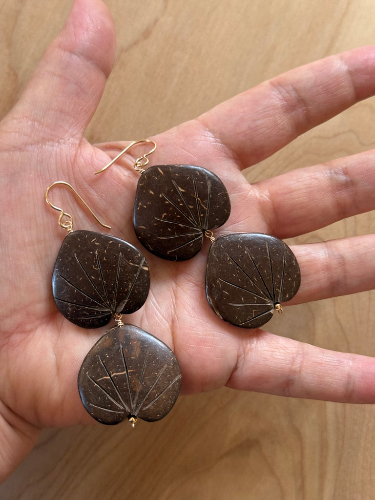 Coconut Leaf earrings. Gold filled. 2 3/4 inches.