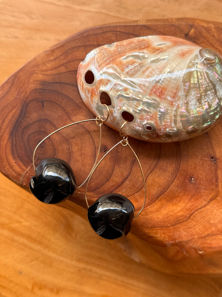 Kukui Nut hoop earrings. Gold filled. Approx 2 1/2 inches.