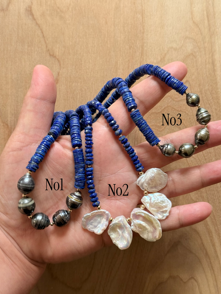no3 Smooth Heishi Lapis Lazuli + Tahitian Pearl approx 17 inch