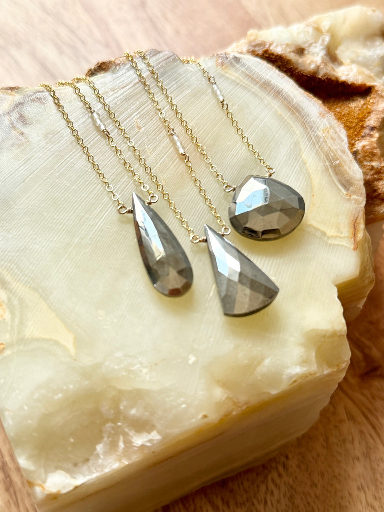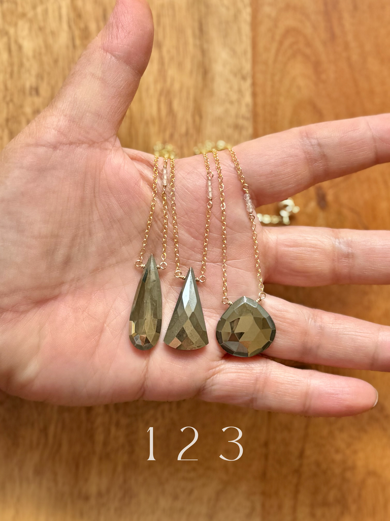 Faceted Pyrite on gold filled chain and lemon quartz beauty mark.